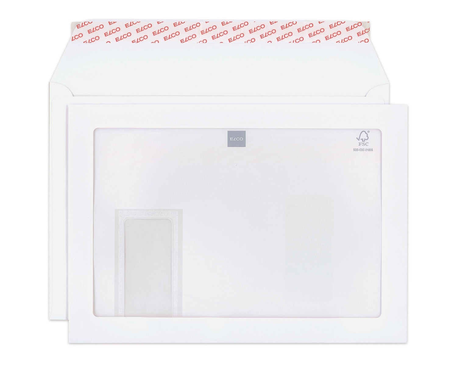 Couvert Premium C4 mit Fenster rechts & Maxi-Fenster auf der Vorderseite, Haftklebeverschluss