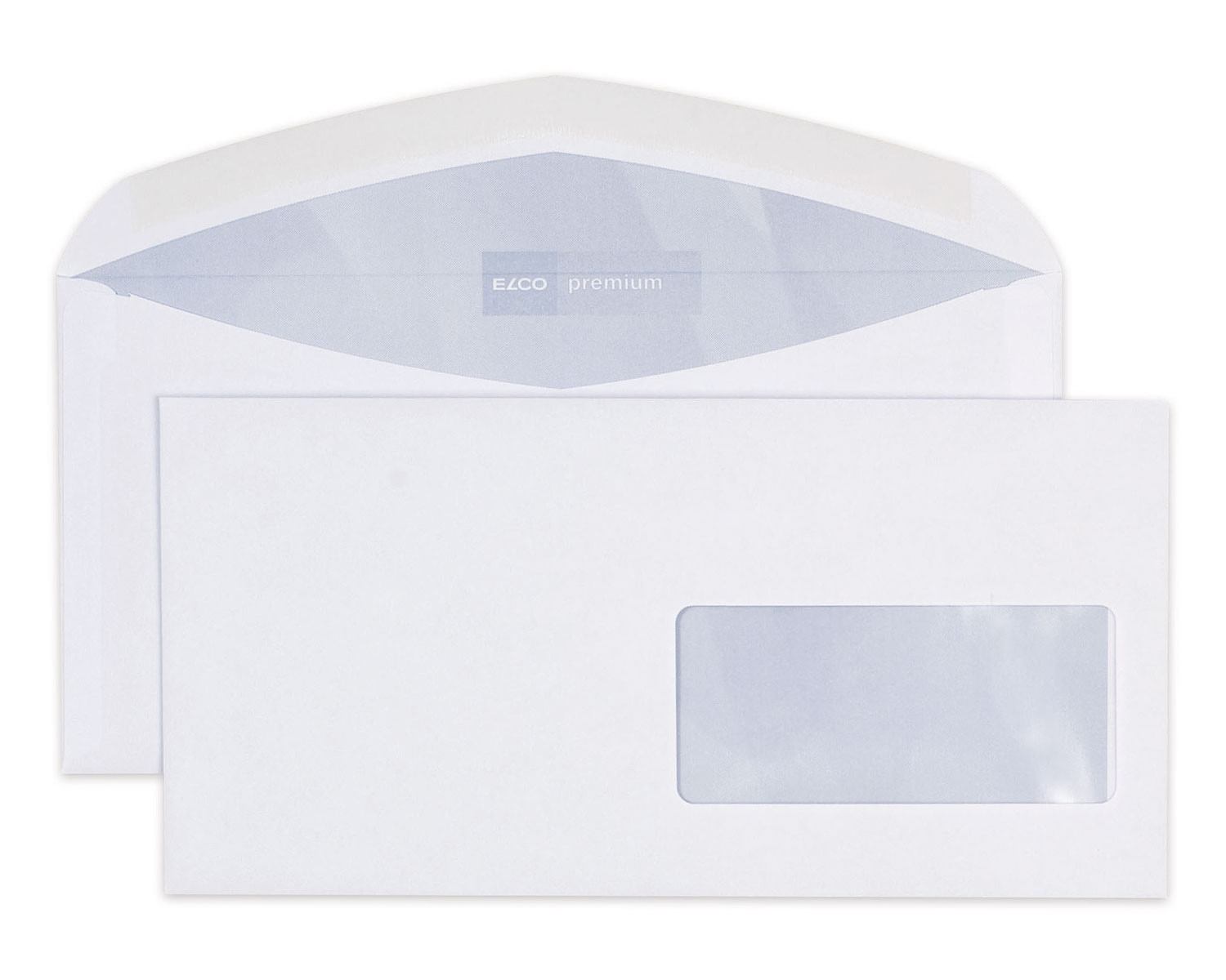Hochweisses Premium C5/6-Kuvert, 100 g/m², mit Fenster rechts und Nassklebeverschluss in der praktischen 500 Stk. Entnahme-Schachtel. Innendruck "ELCO premium". FSC. Top Qualität aus der Schweiz.