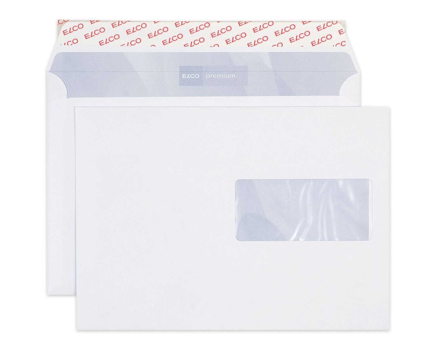 Hochweisses Premium C5-Kuvert, 80 g/m², mit Fenster rechts und Haftklebeverschluss in der praktischen 500 Stk. Entnahme-Schachtel. Innendruck "ELCO premium". FSC. Top Qualität aus der Schweiz.