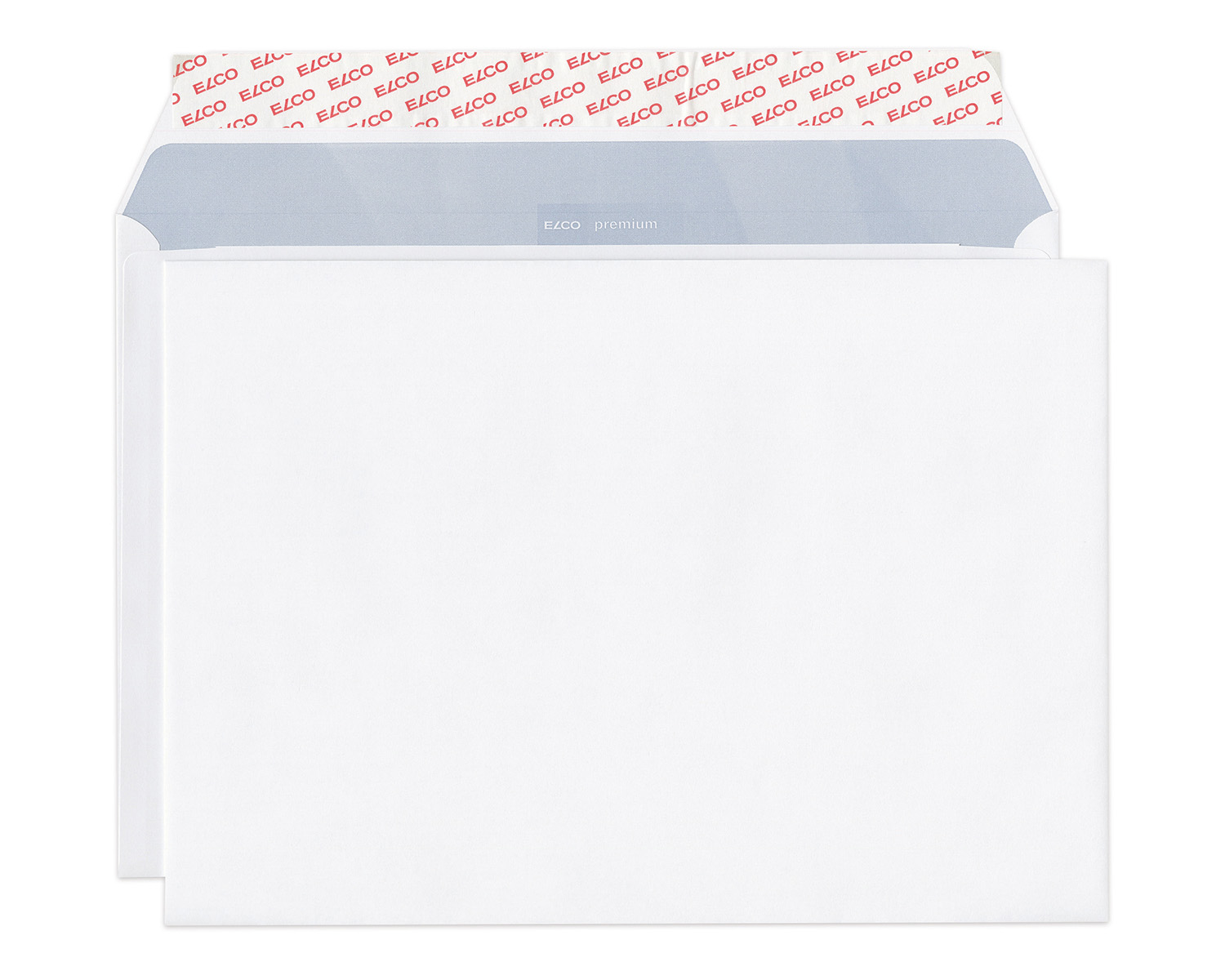 Hochweisses C4-Couvert von ELCO ohne Fenster mit Haftklebeverschluss in der praktischen Entnahme-Box. Kein zerreissen!