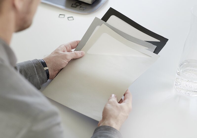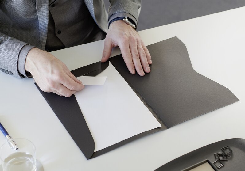 Un assortiment noble pour plus de valeur dans la communication d'entreprise. Des enveloppes, des blocs et des dossiers organisationnels en papier de haute qualité soulignent la présence de l'entreprise en tant que fournisseur de services de haute qualité.