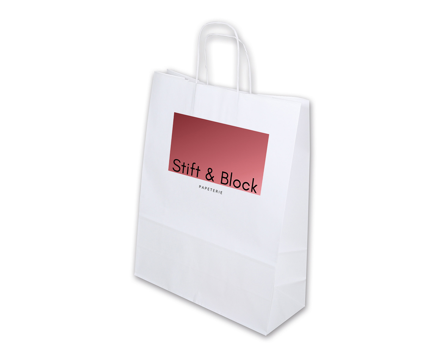 Sac en papier imprimable avec cordelette torsadée en papier kraft indéchirable, 100 g/m². Poignée élégante en corde de papier torsadée pour une grande stabilité, avec une capacité de charge allant jusqu’à 3 kg. Réutilisable et recyclable.