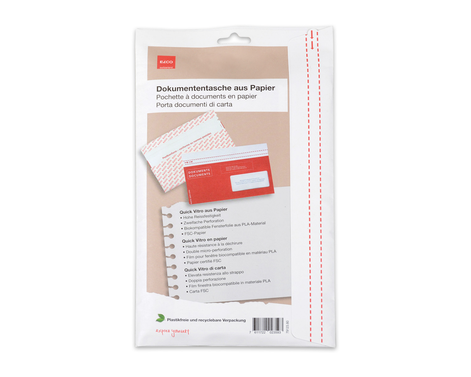 Pochette pour documents Quick Vitro en papier C5/6 DL avec impression "Documents", fenêtre à droite, avec fermeture autocollante dans un emballage sans plastique. Pour l'envoi de documents et de bons de livraison sur des paquets, des colis ou des pochettes d'expédition. Avec perforation pour une ouverture facile, autocollant.