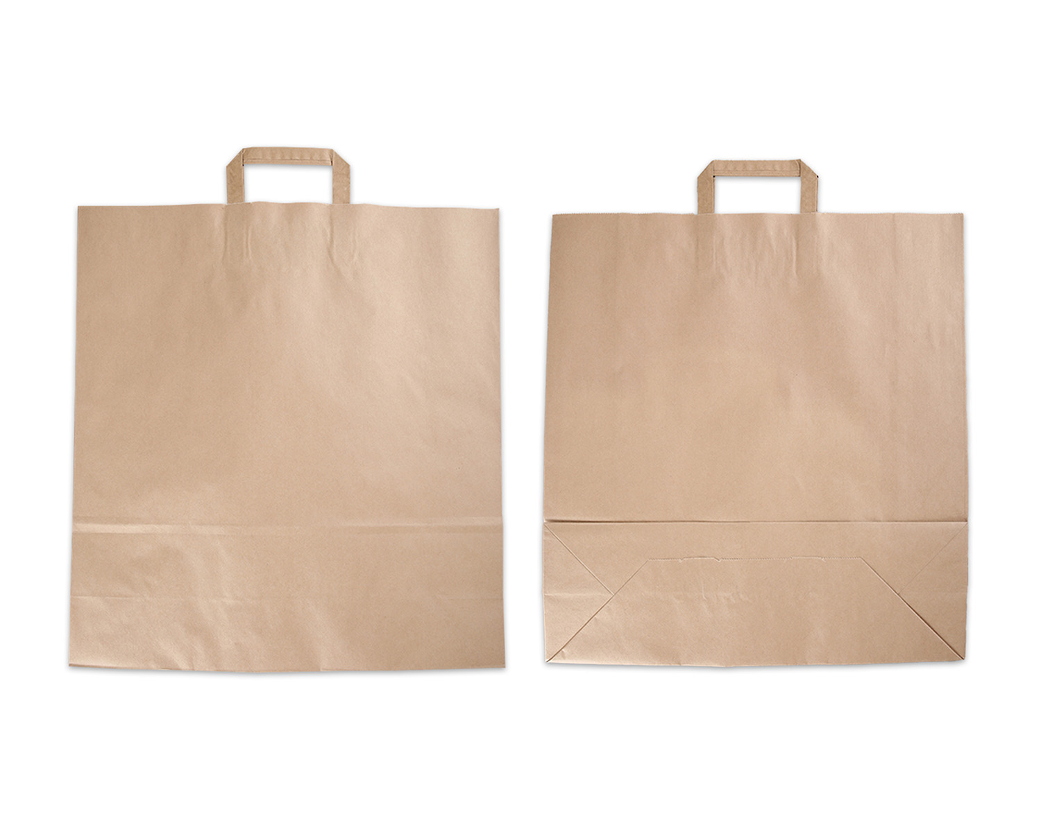 Sac en papier à poignée plate, kraft brun, format portrait 45 x 15 x 49 cm, 110 g/m².